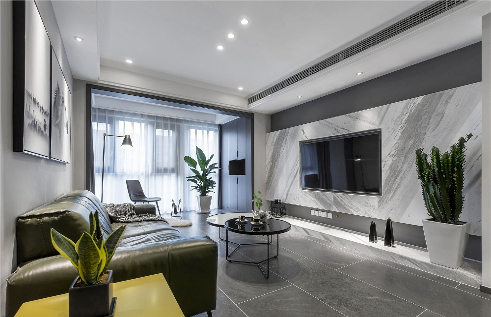 整體墻面以簡(jiǎn)單的淺灰色為主基調(diào),隨遇而安的氛圍在步入客廳就能感受到。