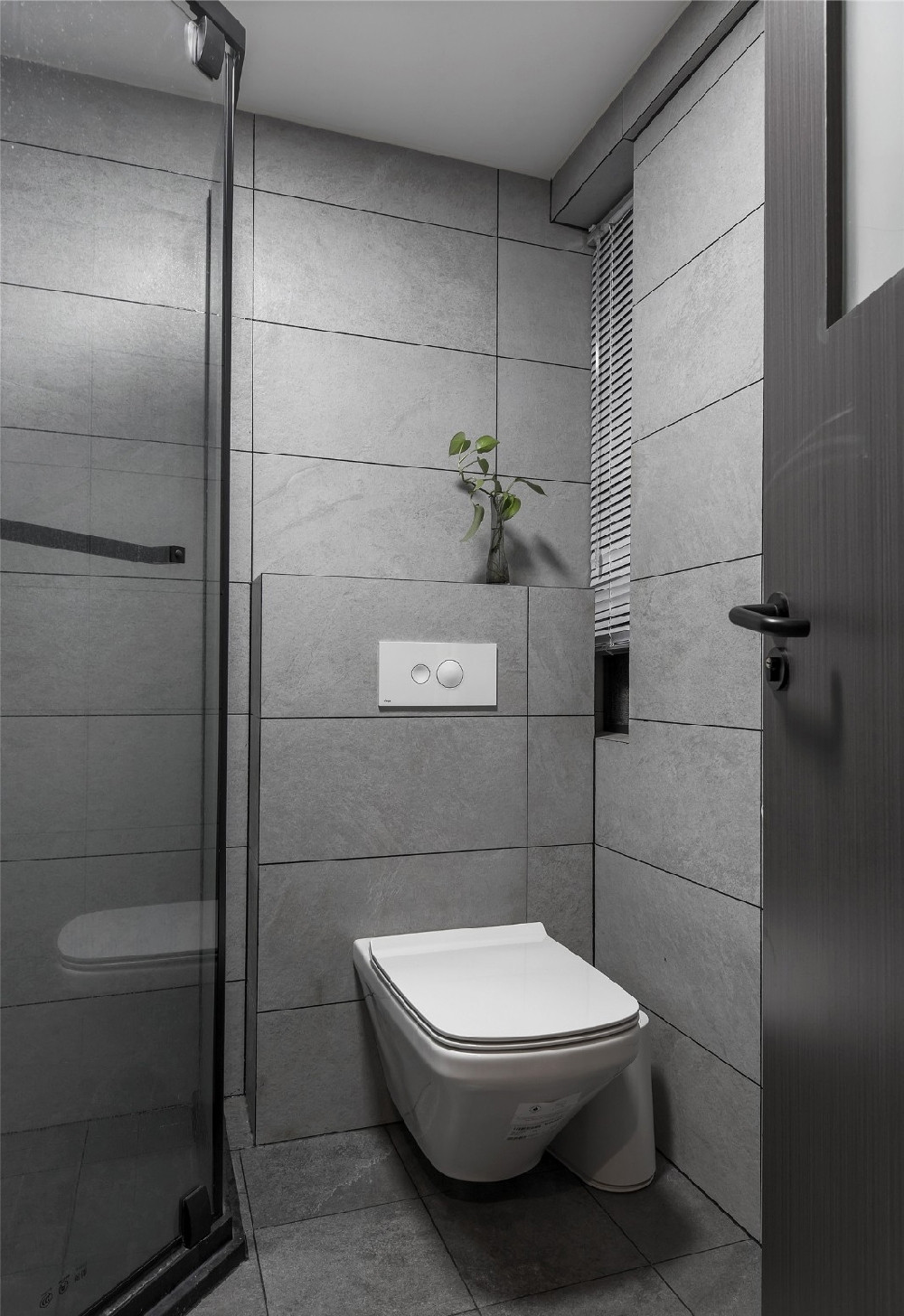 選擇耐臟的墻地磚,美觀又易打掃,用玻璃隔斷淋浴區(qū)和馬桶,干濕分離,設(shè)計(jì)很適用面積不大的衛(wèi)生間。