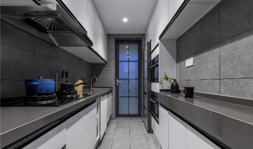 對(duì)于廚房的規(guī)劃,業(yè)主說實(shí)用性要強(qiáng),歸置一個(gè)雙開門的冰箱,原廚房的操作臺(tái)面只有3米,無法滿足這些需求,因此在這塊空間的改動(dòng)較大,將廚房與書房之間的墻體拆除,并向書房借用了40公分來彌補(bǔ)廚房空間,滿足最初的功能規(guī)劃。