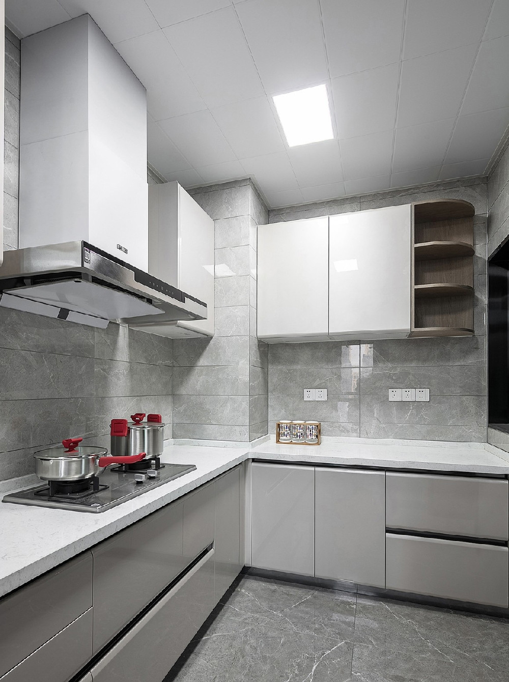 在滿足功能需求后,又討論出更有意思的方案,把原有廚房的門和窗進(jìn)行調(diào)換,這樣的一改動(dòng), 瞬間讓餐廳和中廚、西廚有趣的串聯(lián)和呼應(yīng)起來。
