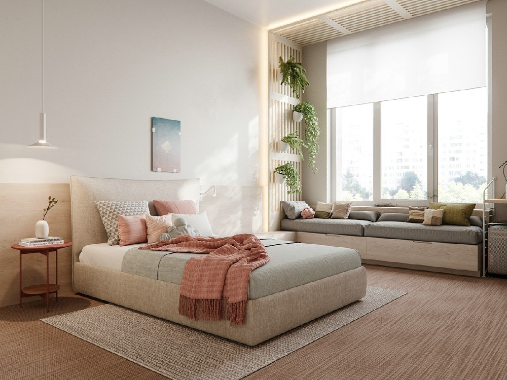 女孩房重視居住者的內(nèi)心和情感,放松的私語和溝通。整個空間色調(diào)用不同層次低飽和度的淺色,圍塑出空間愜意自在的流動旋律