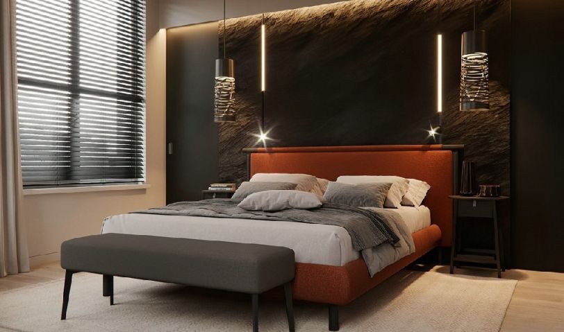 主臥套間氣質(zhì)簡約,細(xì)節(jié)卻十分考究。整體黑白灰為主色調(diào),簡潔的透光窗與主衛(wèi)形成互動關(guān)系也增加了空間延展及通透性;