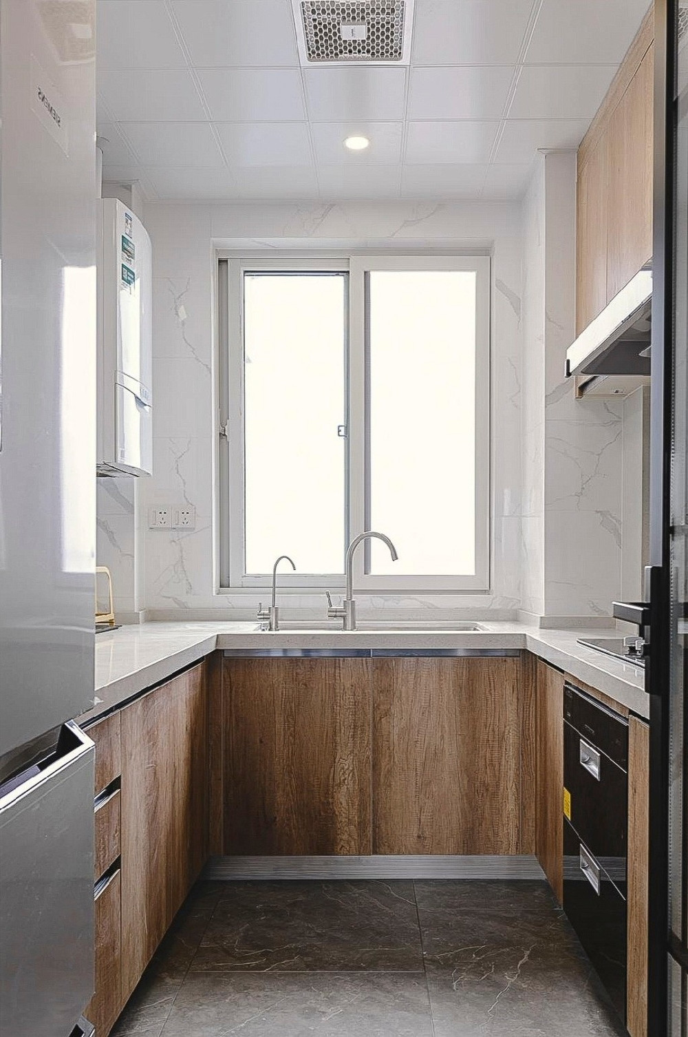 干凈明亮的廚房,白色的空間中加入溫潤的木色,起著承上啟下的過渡作用。