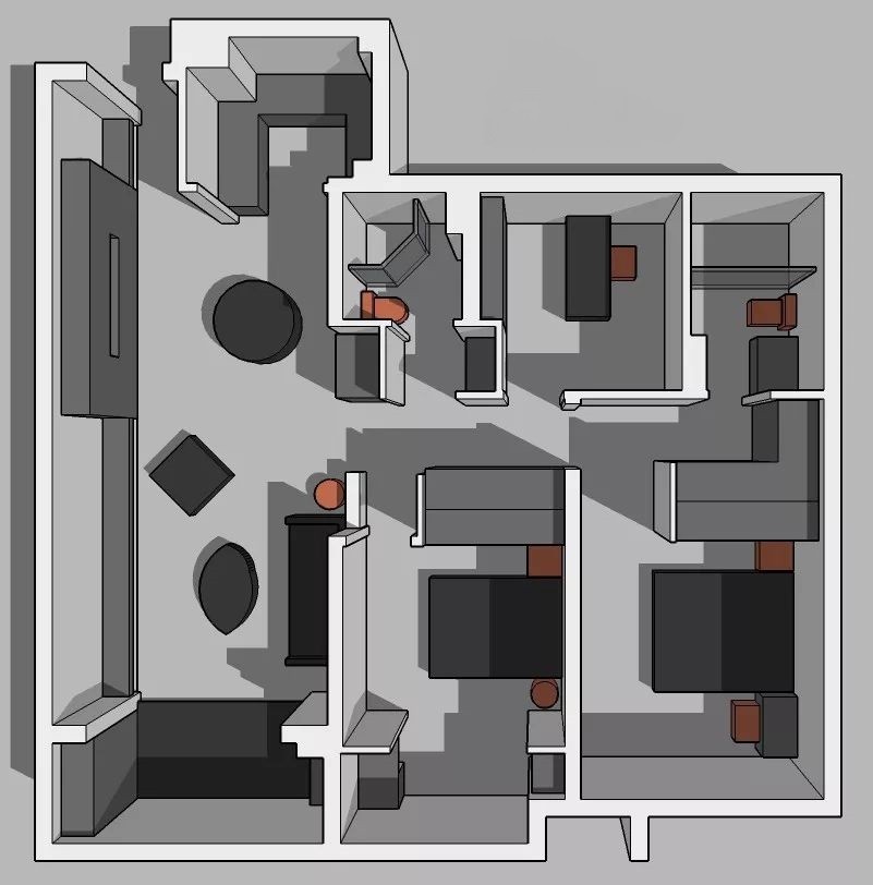主臥整體以暗灰為主色調(diào),柔軟的織品,溫暖的木地板,完美營(yíng)造舒適放松的睡眠環(huán)境。