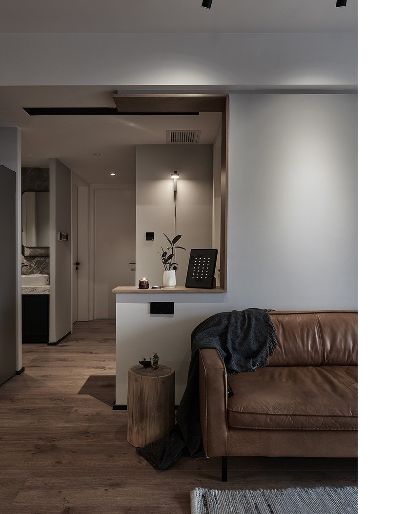 將沙發(fā)墻以半開放的形式展現(xiàn),讓客廳與臥房的交界處有更多的靈動(dòng)空間。