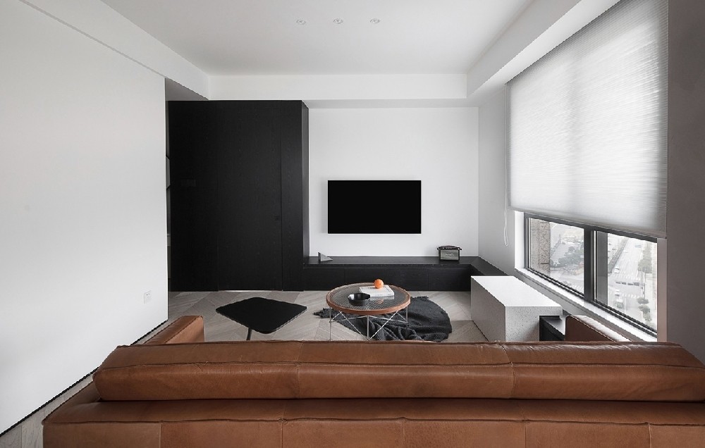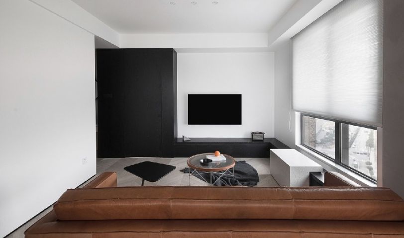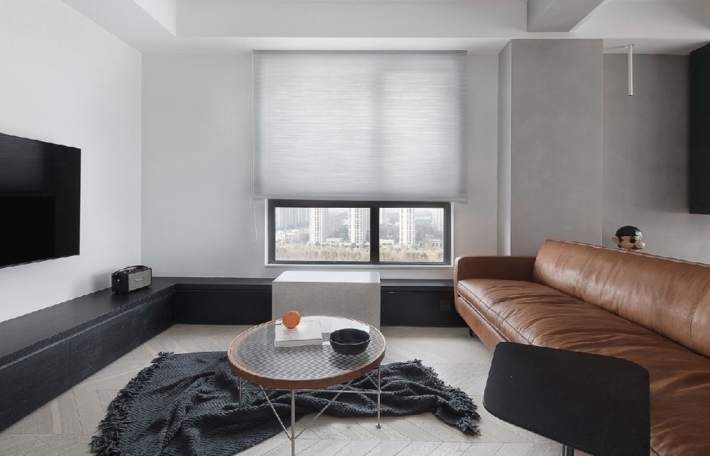 適度留白的簡潔色調(diào),干凈利落的線條感,加以一張棕色雙人沙發(fā)、簡約富有線條感的茶幾組 合,整個(gè)客廳盈缺妥恰,給人以舒緩治愈的心理感受。