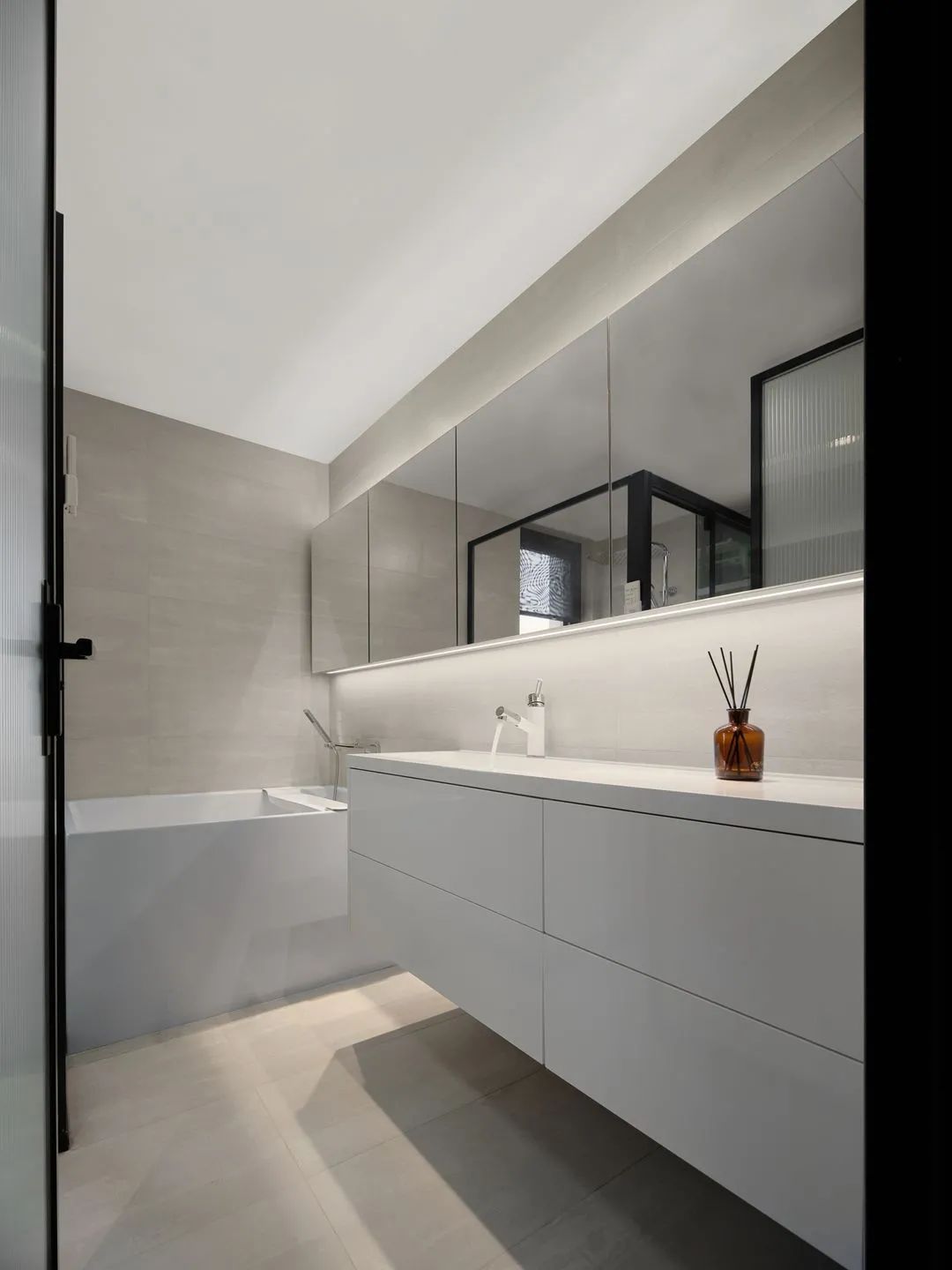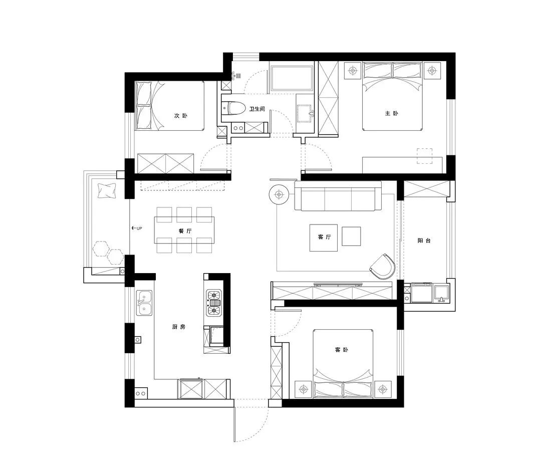 同時(shí)將主臥和次臥空間都進(jìn)行了小幅度的壓縮,以擴(kuò)大衛(wèi)生間的使用面積,增加浴缸提升衛(wèi)浴的舒適度。