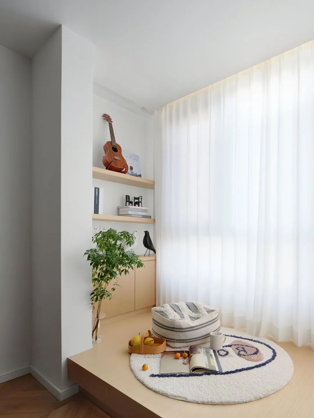 木質(zhì)地臺(tái)打造一個(gè)隨意的休閑區(qū)域,看書(shū)觀景,輕松愜意。
