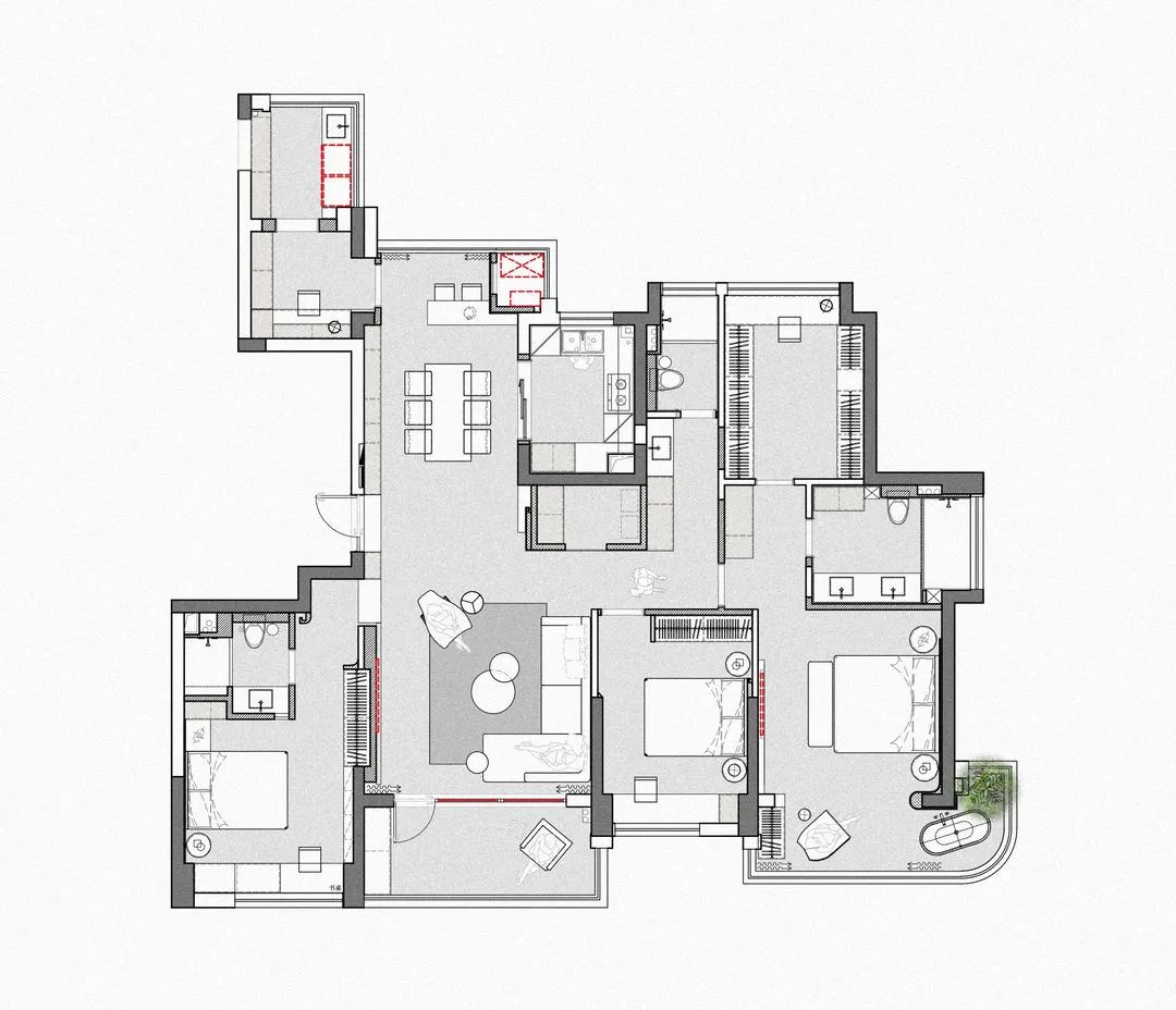 案例名稱 暗調(diào)極簡之家,找回本心 戶型 四居室 案例面積 185㎡
