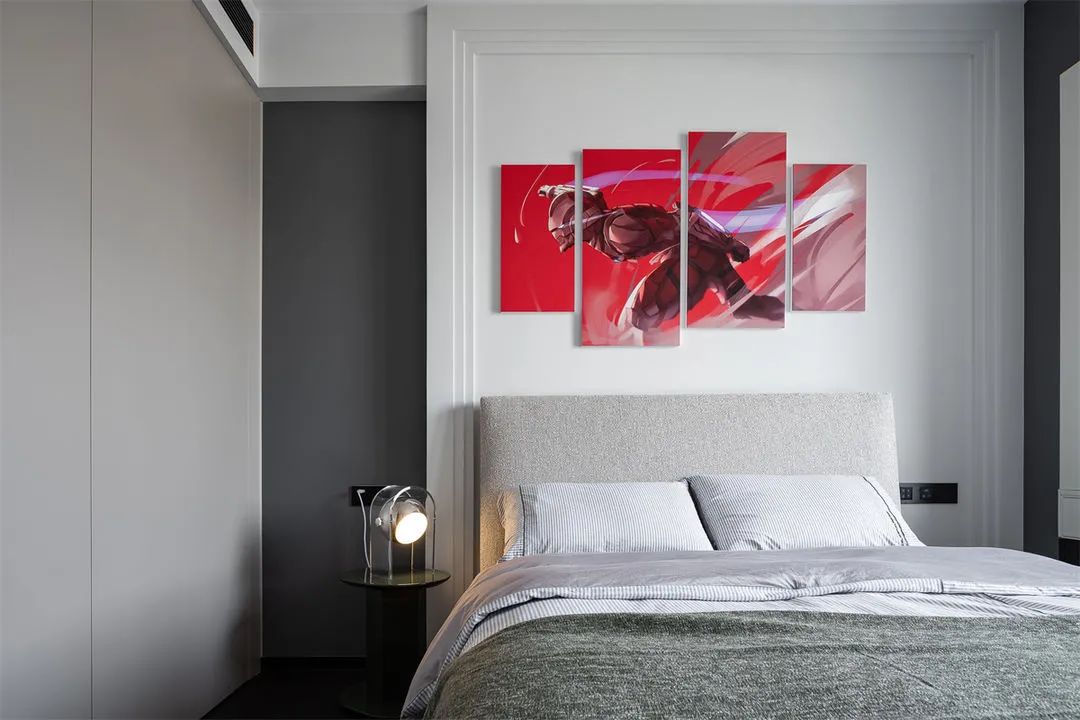 相比之下,兒童房的色調(diào)選用的是溫和的灰色系,在整個空間的大體色調(diào)下不會顯得突兀。