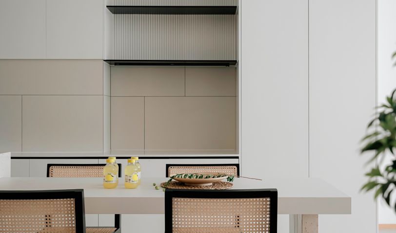 櫥柜和餐邊柜均以白色系為主,保留儲物空間同時,盡可能削弱柜體的厚重感,降低視覺壓迫。