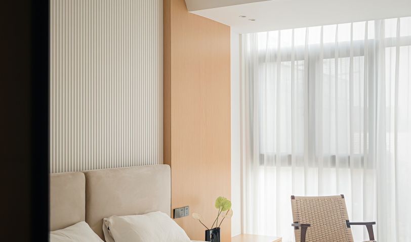 房間沿用木色為主色系,利用建筑結(jié)構(gòu)完成榻榻米和書桌一體化的設(shè)計。