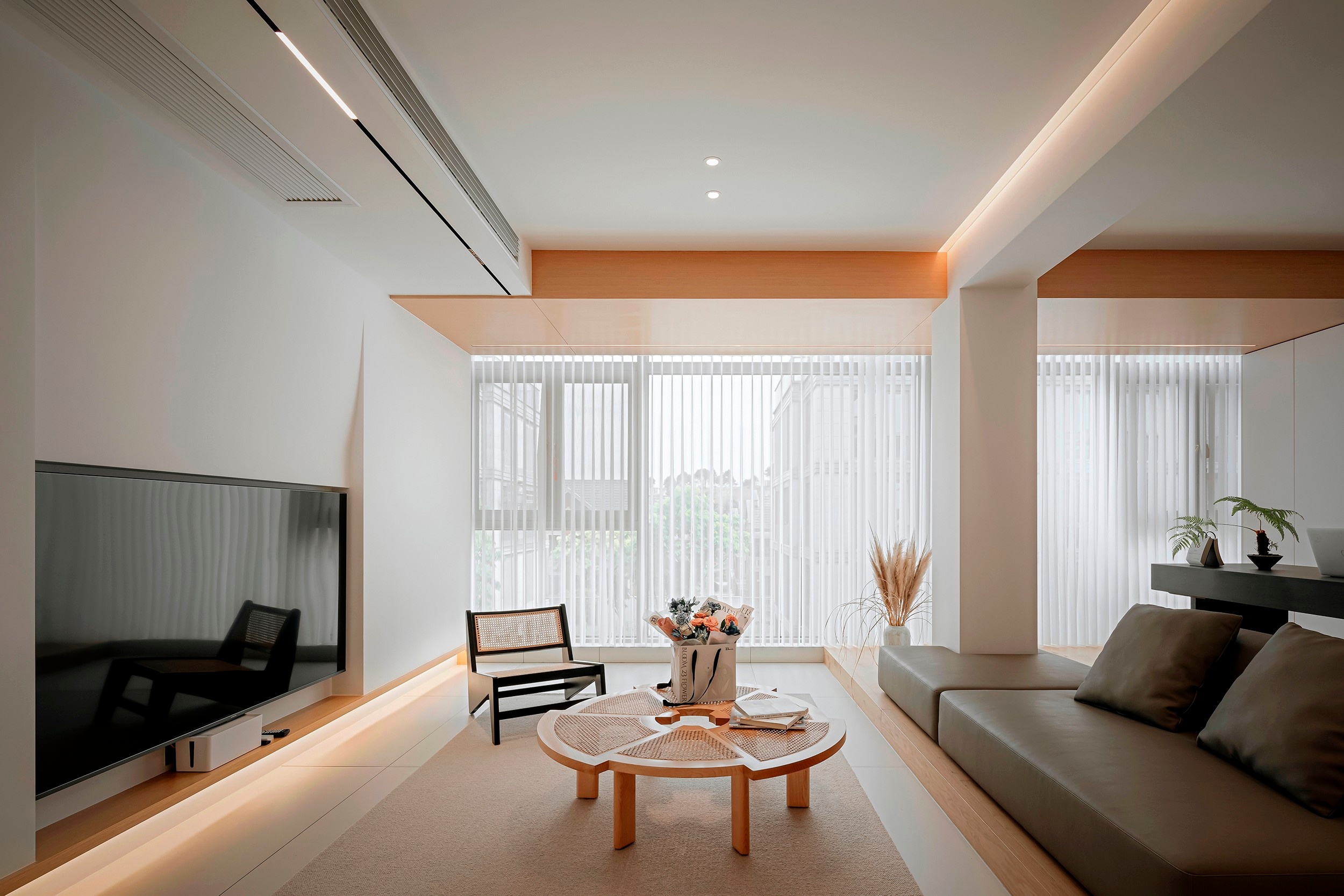放棄復(fù)雜設(shè)計,轉(zhuǎn)而以幾何變化和材質(zhì)紋理搭配構(gòu)成空間設(shè)計感,比起元素堆砌,刪繁就簡更加考驗設(shè)計師的功底。