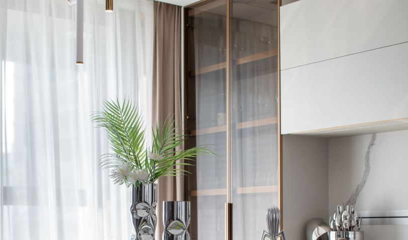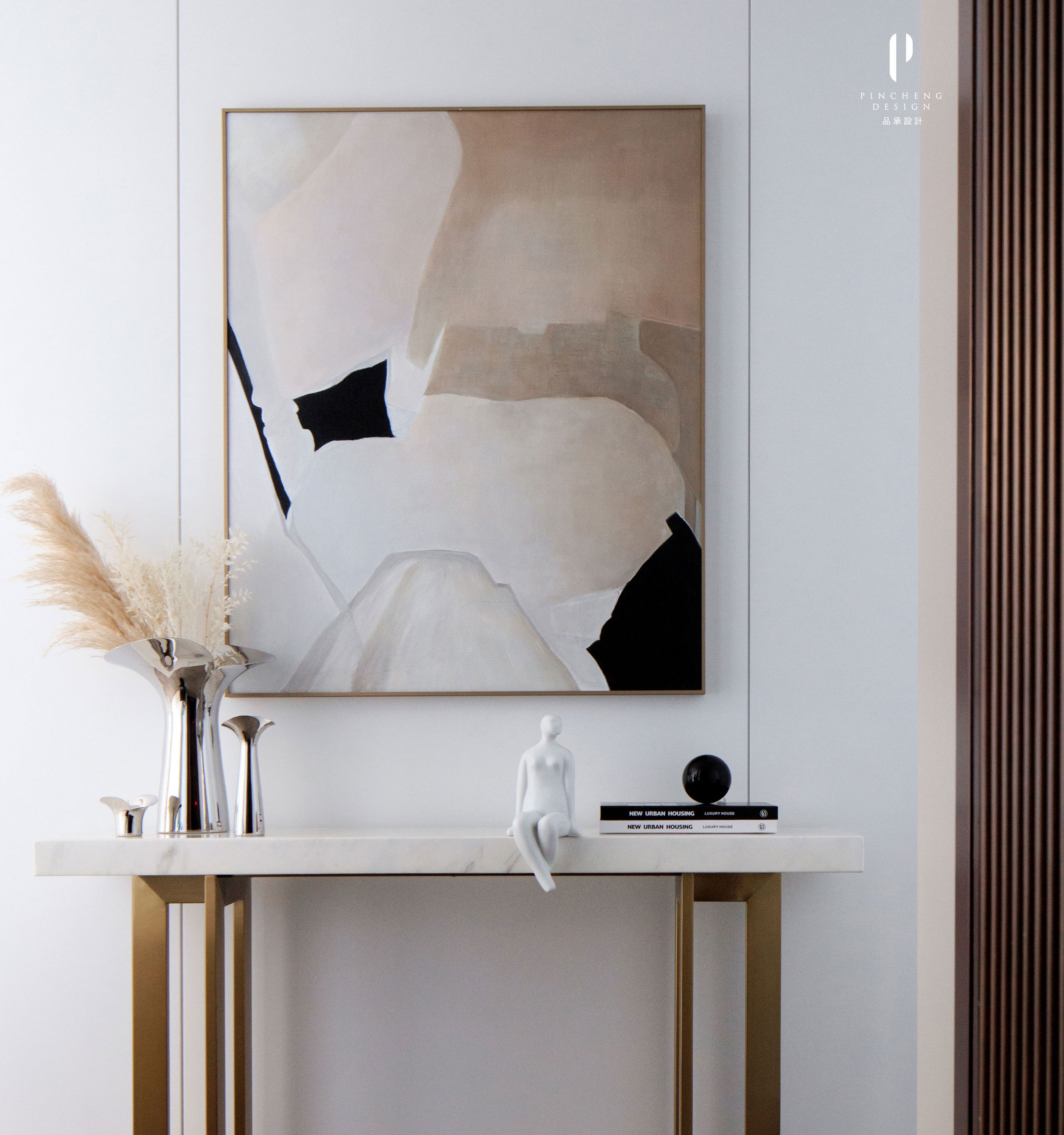 獨(dú)立的玄關(guān)以個(gè)性端景臺(tái)作為承載,開(kāi)啟歸家的儀式感。入戶的第一視覺(jué),便能直觀感受到靜謐氣息。放眼望去墻面一副簡(jiǎn)約的抽象畫(huà)如藝術(shù)一般獨(dú)特,簡(jiǎn)而溫潤(rùn)的色澤,似時(shí)光荏苒后安靜又內(nèi)斂的沉淀之美。