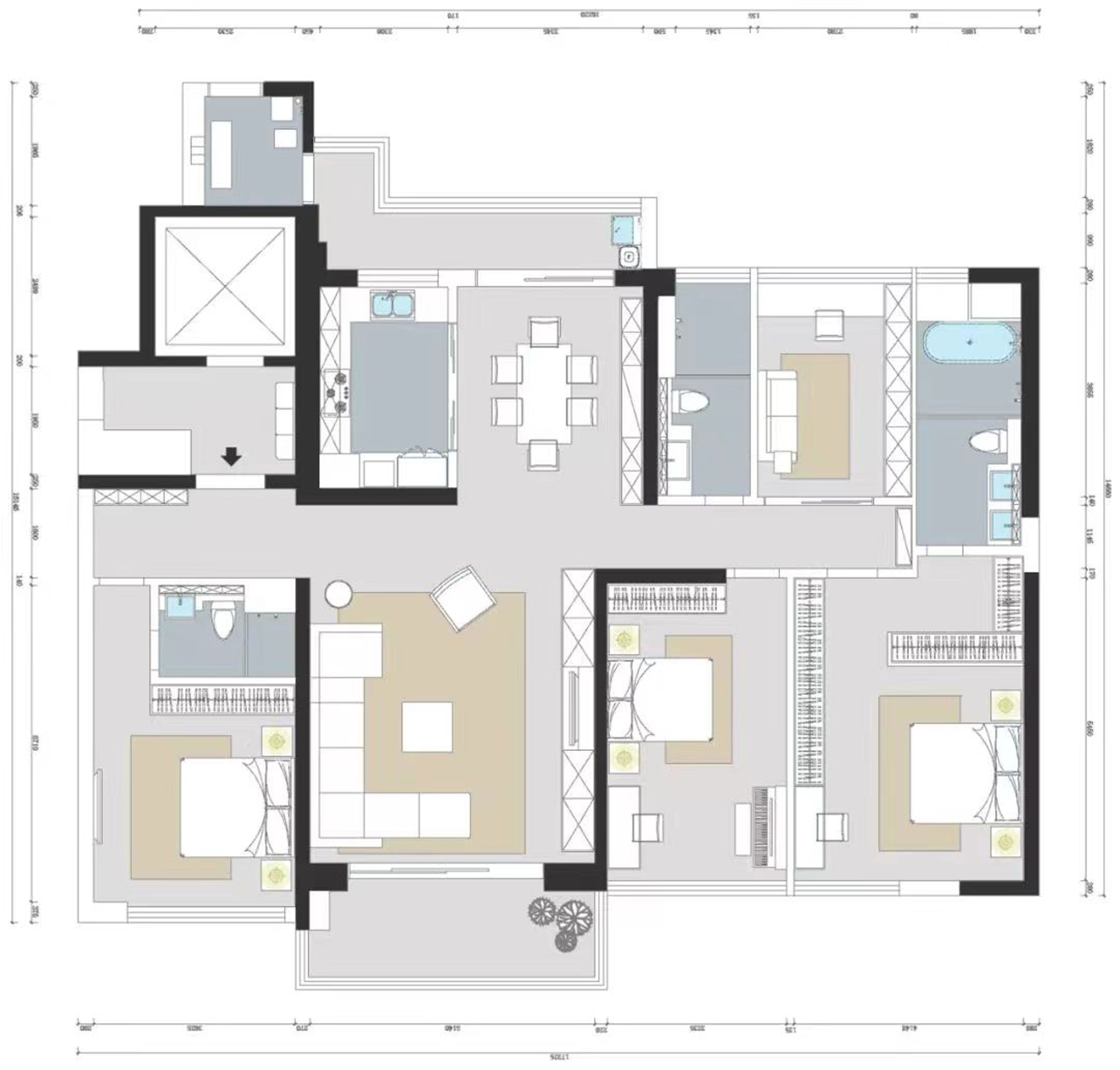 案例名稱 精裝修改造 戶型 三居室 案例面積 225㎡