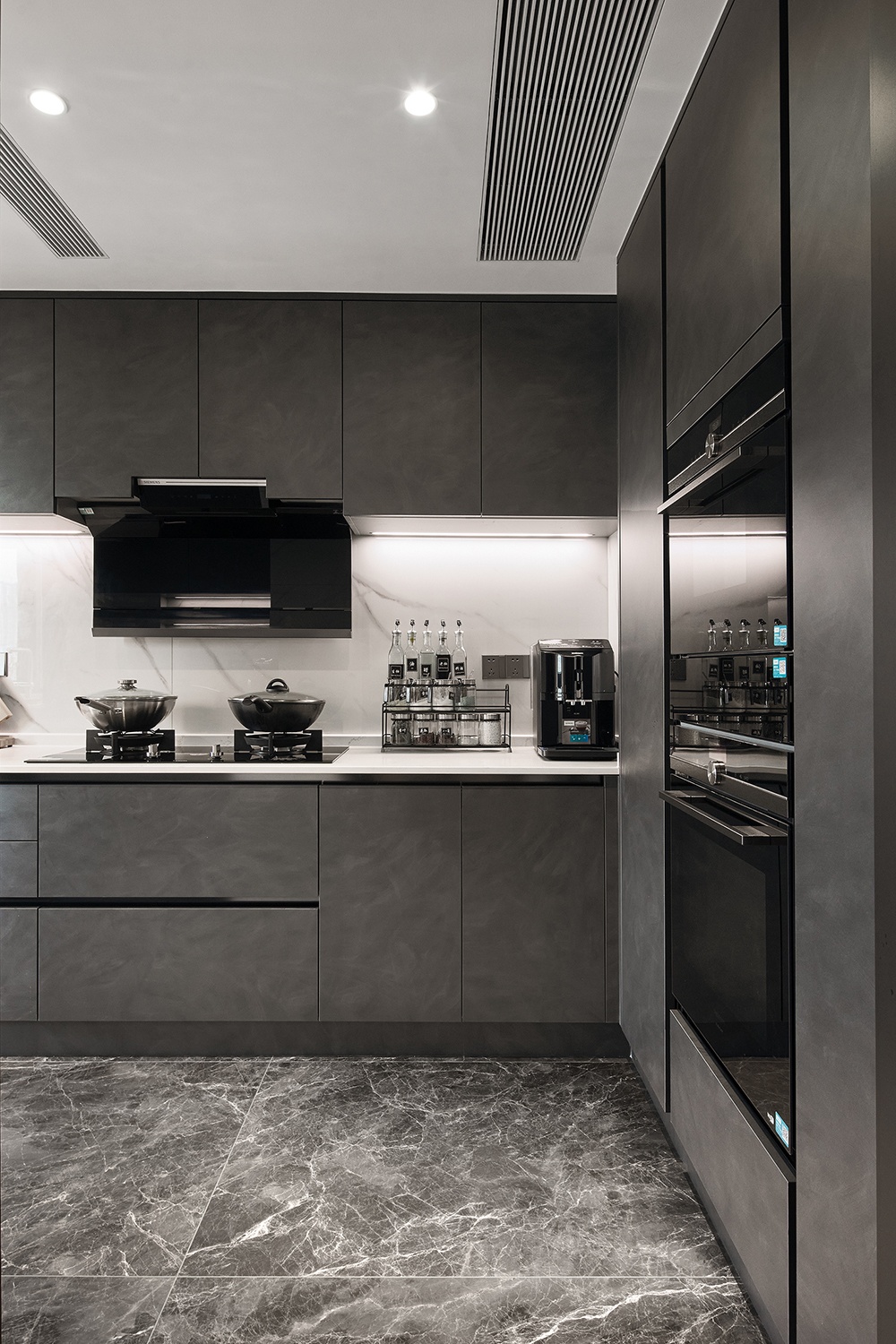 愛只有落實人間煙火才能長久,廚房以黑白灰色調(diào)作為基底,讓空間有了更大的發(fā)揮空間,美好的設(shè)計讓烹飪變成了一件愜意的事。
