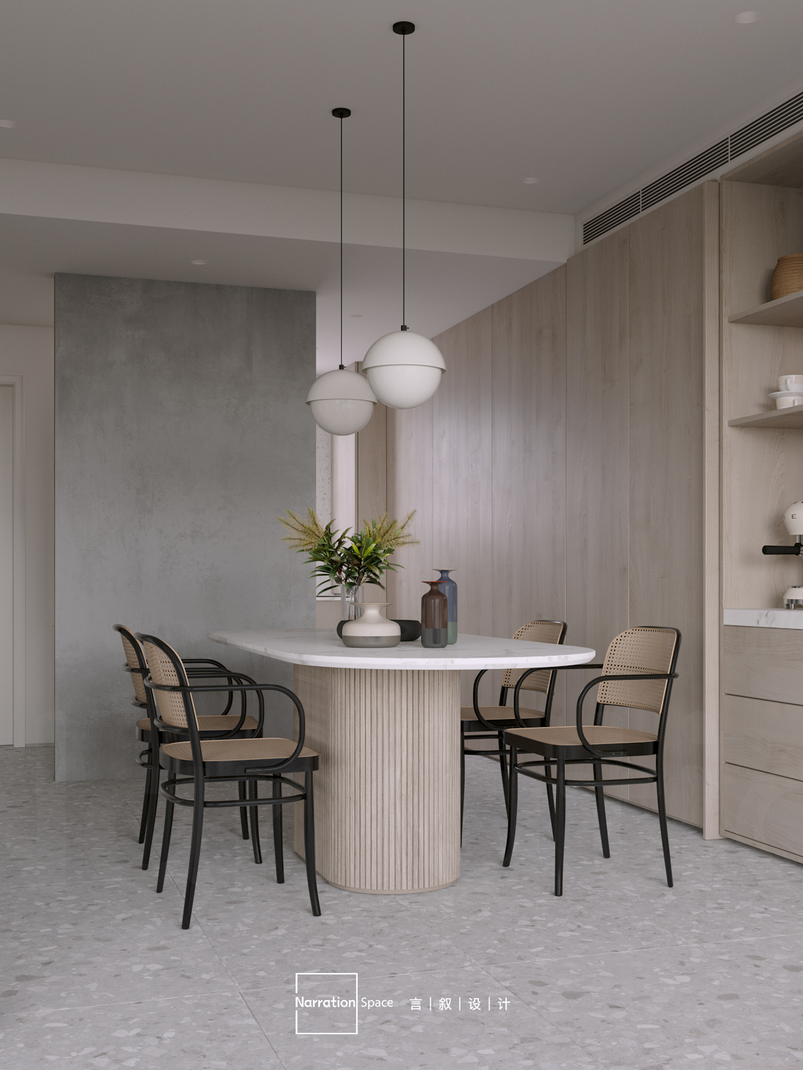 圍繞極簡,侘寂的主體氣質(zhì),為當(dāng)下的二人世界、以后的三口之家打造一片廣闊溫馨的天地。在“去風(fēng)格化”的主流趨勢下,我們避開軟硬裝營造的空間,而是斟酌結(jié)構(gòu)之間的比例、層次、透視、感受,增進(jìn)人與家的親密關(guān)系。