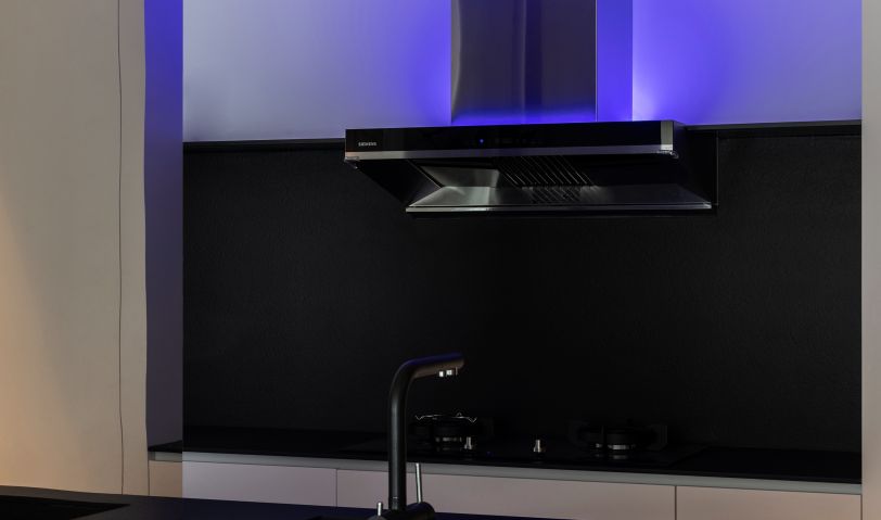 利用入戶左手邊墻體深度差,打造玄關(guān)儲(chǔ)物柜,與櫥柜一體,整體感強(qiáng)烈;