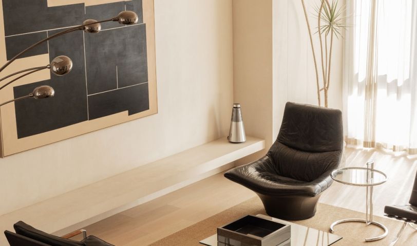 有多個(gè)燈頭造型的落地?zé)粼诳臻g里顯得很有張力,一掃極簡的乏味感,不銹鋼的質(zhì)感和黑色更搭配。