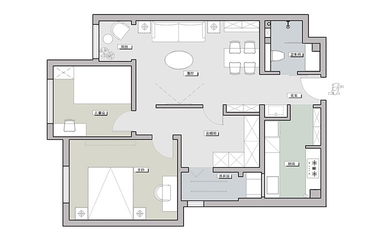 期初是剛過戶的二手房,是小夫妻作為婚房使用的。他們的三年內(nèi)的計劃還沒有準(zhǔn)備要小孩,但父母偶爾來居住。因?yàn)橛信菰璧牧?xí)慣,女主強(qiáng)烈希望能在不大的衛(wèi)生間里增加浴。雖然人數(shù)不多,但是愛穿的他們,衣服還是蠻多的,需要一個相對獨(dú)立的衣帽間。