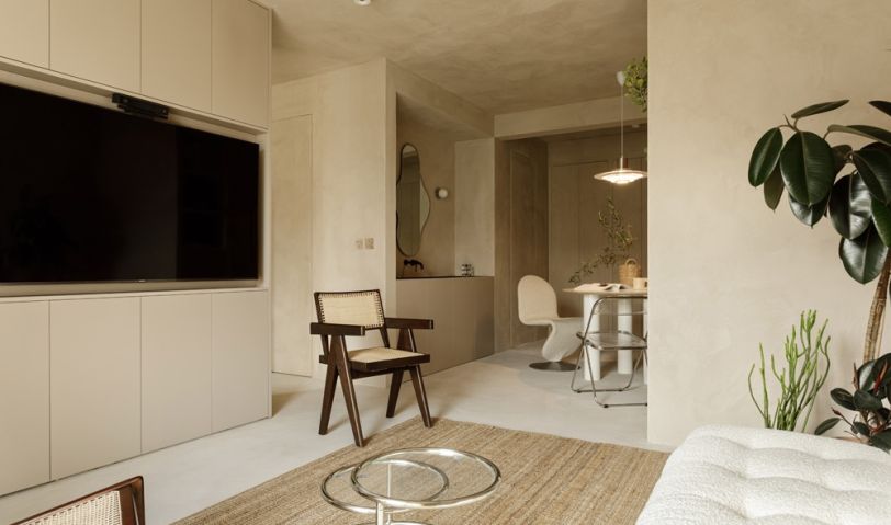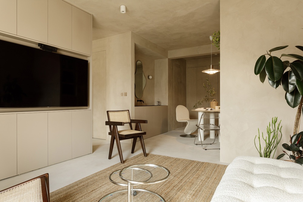 客廳的設計比較簡單,硬裝除了墻面和地面的材質沒有任何多余造型