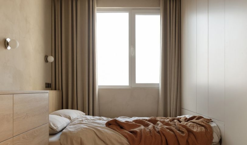 臥室是休息的地方,不需要太亮,所以頂面除了靠墻的一條燈帶之外沒有其他多余的光源,床頭兩側的壁燈可以保證睡前看書看手機時的燈光