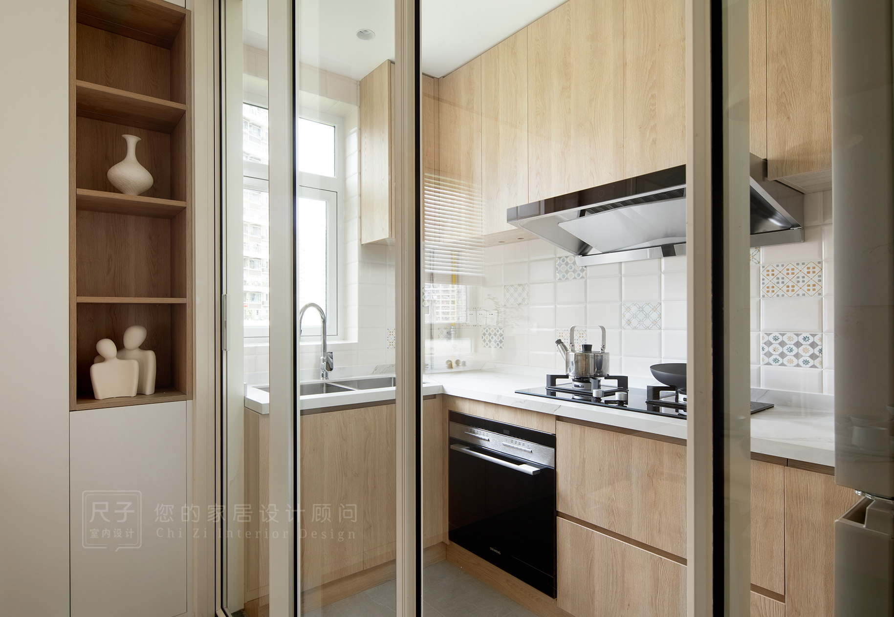 餐廳廚房以推拉門相隔,通透的玻璃材質讓空間關系更加可變:開是自由暢通的一體式大空間,合是井然有序的不同功能區(qū)。