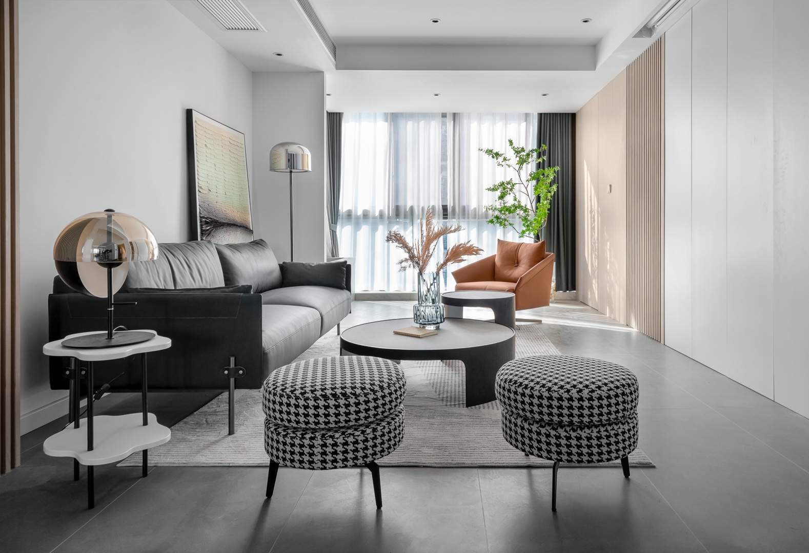 給客廳做減法,大面積的墻面留白搭建出簡約雛形,小面積的木飾面點綴,不僅剔除了空間扁平狀態(tài),也透出兼容并蓄的空間層次感,留下更細(xì)膩的空間語言。
