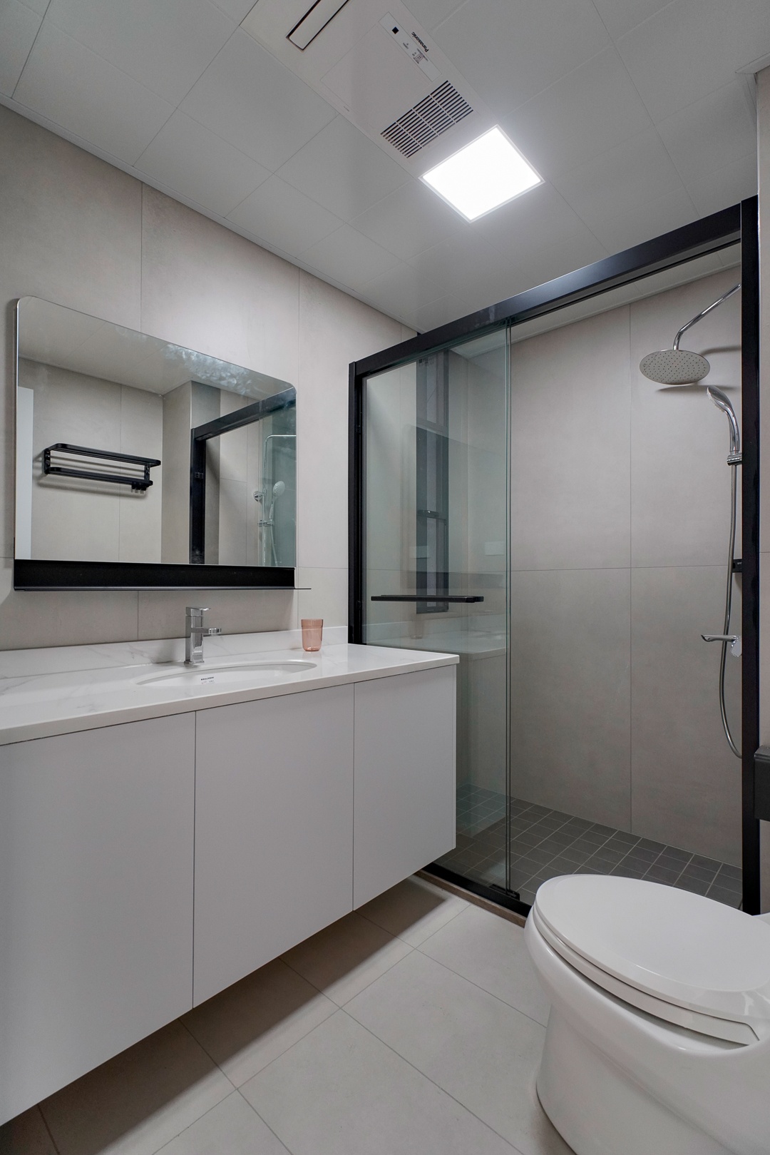 衛(wèi)浴空間依然選用了大面積的白色,悄然渲染出清新舒壓的氛圍感。