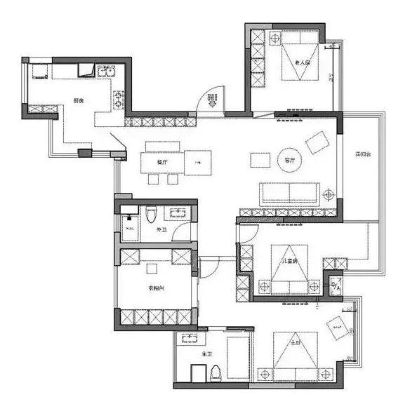 房子的各個功能區(qū)相對獨立,動線清晰順暢,轉(zhuǎn)角吧臺,讓屋主吃飯時也能遠(yuǎn)眺湖景,原客臥改為衣帽間,與主臥、主臥,合為一個大套間,帶來更好的生活體驗。