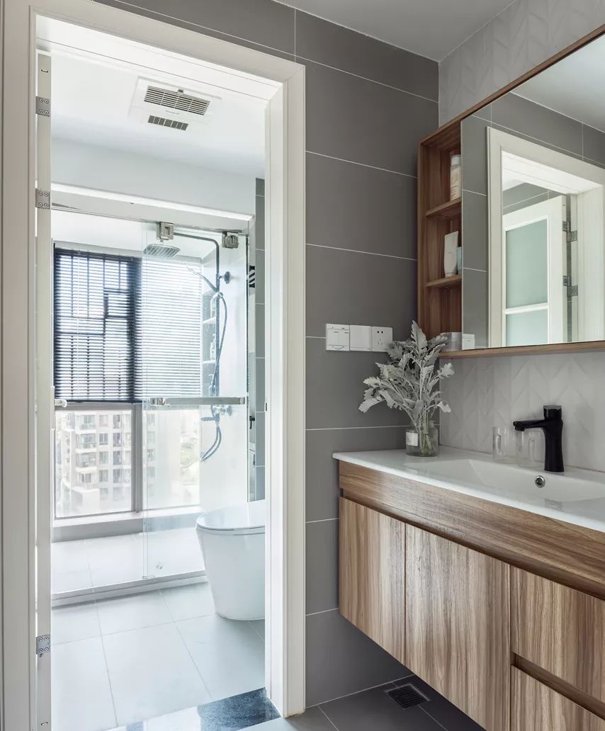 衛(wèi)生間,干濕分離,淺灰色的墻磚與地磚,帶來優(yōu)雅簡潔的質(zhì)感。