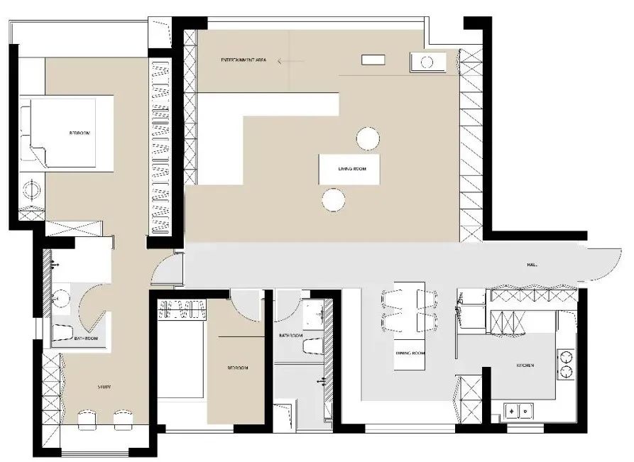 2. 陽臺(tái)封窗納入客廳,增加客廳面積,給孩子更寬敞的玩??臻g。