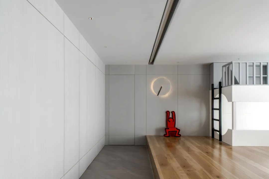 4. 客廳與臥室均采用地臺(tái)抬高地面,讓孩子們可以自在玩耍,不用擔(dān)心地面潮濕冰冷等問題。